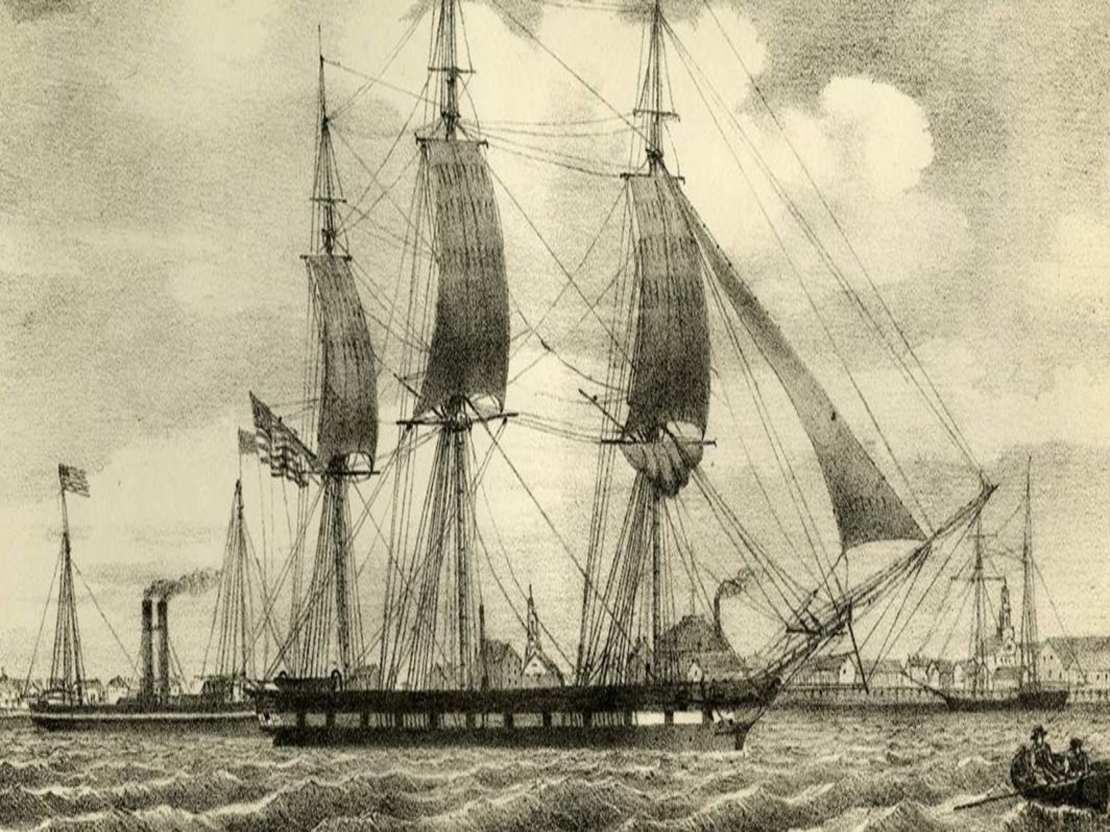 Sheets of cold rain lashed the decks of the USS Jamestown and gale-force winds battered the three-masted American sloop of war through the swells of the North Atlantic. Captain Robert Bennet Forbes barked orders as his energetic but inexperienced crew scrambled to haul up the mainsail, a daunting task on this moonless night of raging seas on April 2, 1847. Weak light leaked from deck lanterns, but beyond the ship’s raised prow and forward riggings, the darkness was total — “black as Erebus,” as Forbes described it in the captain’s log, referring to the mythological netherworld that serves as the passageway to Hades.