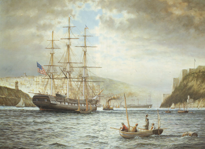 As the potato blight tore apart Irish society, and the English turned a blind eye, the Americans came to the rescue. Spurred by cries for aid from such illustrious statesmen as Daniel Webster and Henry Clay, the American populace donated generously. The Jamestown was fitted as a relief ship, and Captain Robert Bennet Forbes was commissioned to undertake the voyage to Ireland with his hold full of supplies, which, in a “happy coincidence,” were loaded aboard the Jamestown on St. Patrick’s Day, 1847.