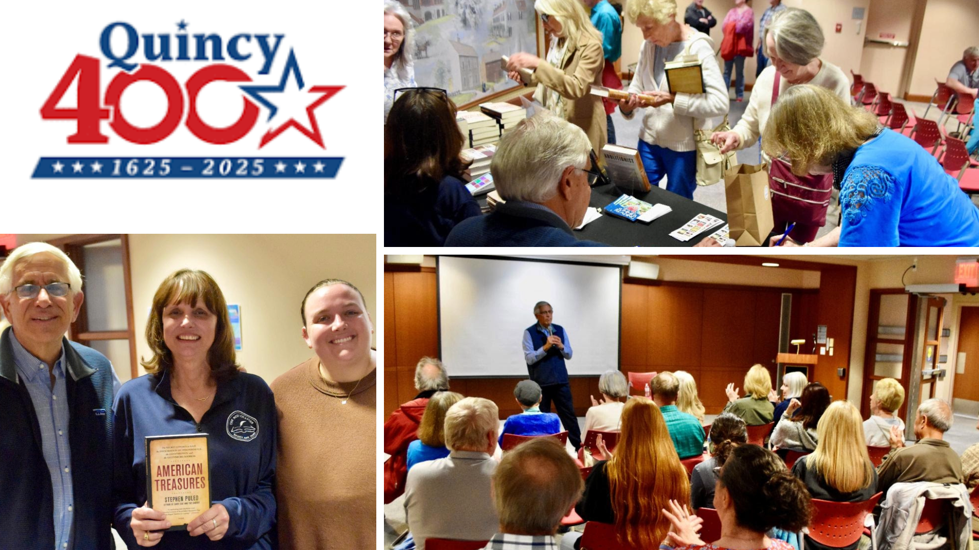 My thanks to the Thomas Crane Public Library in Quincy, MA for hosting my appearance to discuss my book, American Treasures: The Secret Efforts to Save the Declaration of Independence, the Constitution, and the Gettysburg Address. The event, which closed out my busy Spring speaking season, was part of Quincy’s 400th anniversary program. Thanks also to the enthusiastic audience, to library staffers, and to The Next Chapter Bookstore and More, a Quincy-based independent bookstore that handled sales. I’m shown here with “Next Chapter” owner Helena Skinner (holding my book) and assistant Kayla Barry-Skinner. Thanks to Quincy, the Thomas Crane Library, and Next Chapter Bookstore!