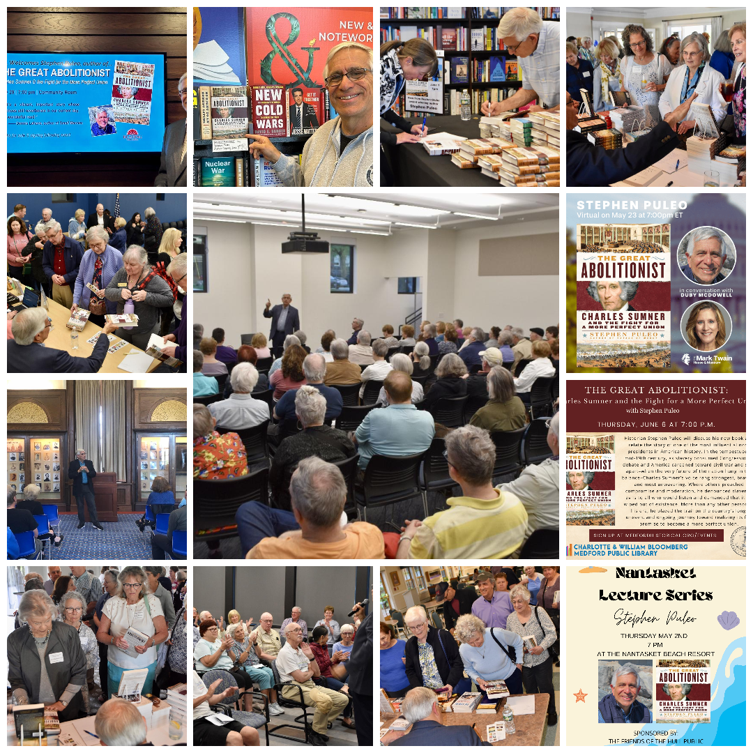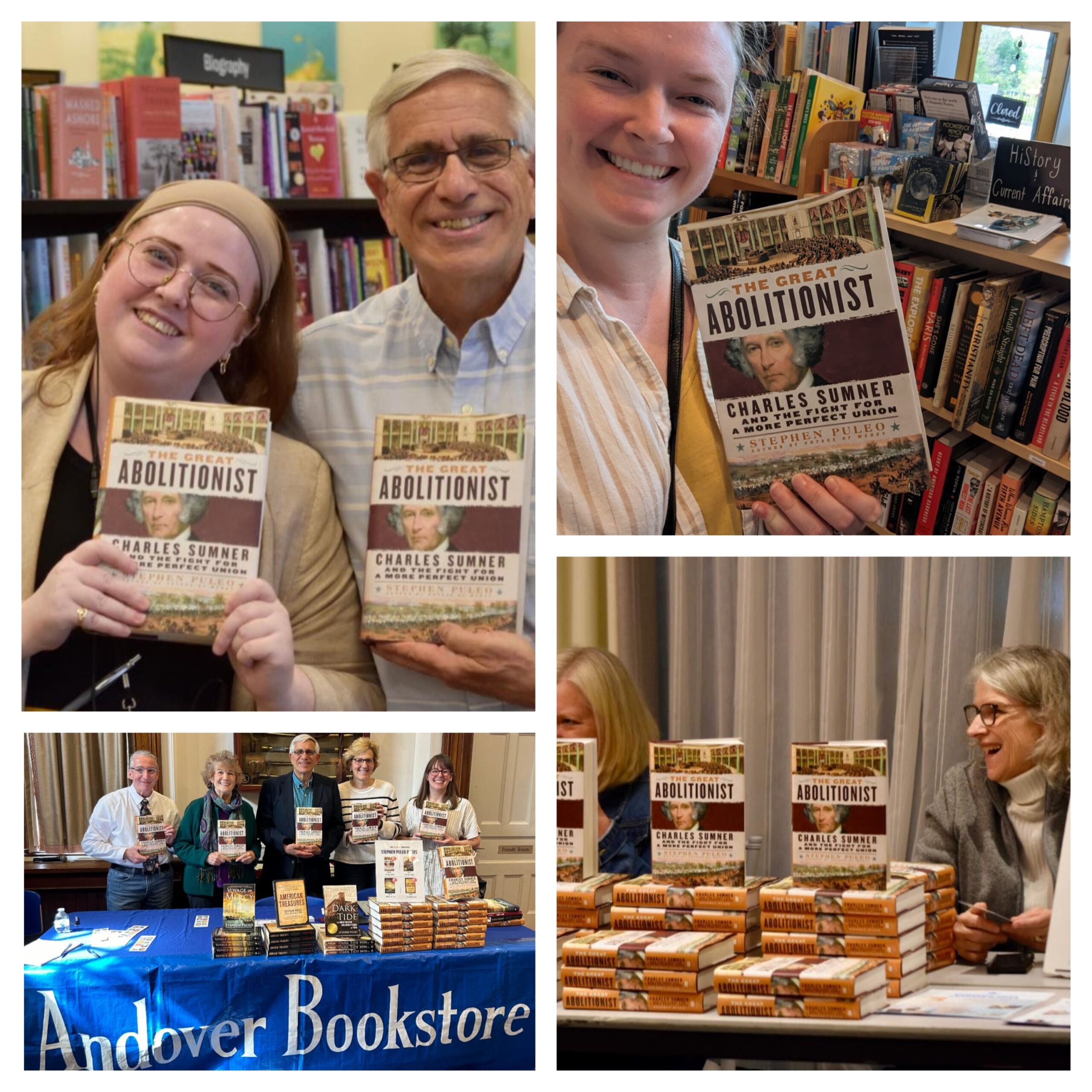I have thanked and continue to thank so many organizations, bookstore staffers, librarians, podcasters, moderators –and most of all, YOU, dear readers – for a memorable spring book tour for The Great Abolitionist: Charles Sumner and the Fight for a More Perfect Union. As an author, I could not have asked for a better launch! The photos in this introduction show just a few of the many highlights from the tour.