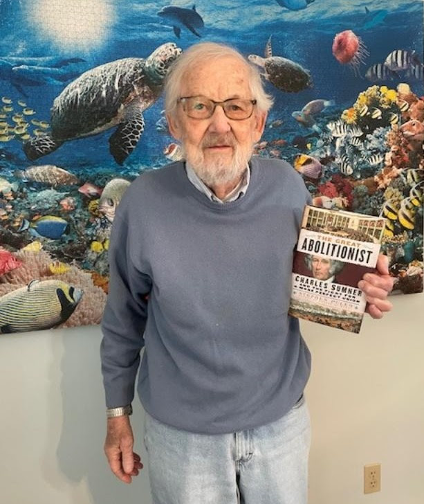 “I finished reading The Great Abolitionist. It is an excellent book, thank you so much for giving us such a terrific read! I have read (with much enjoyment) 6 of your 7 previous books – all top-shelf writing. have no doubt that your Sumner book exceeds the previous ones – in research, narrative, writing excellence – on and on. Dennis Lehane (BC High alum) commented on the book jacket that “The Great Abolitionist is ‘wonderful.’” And I second his opinion.